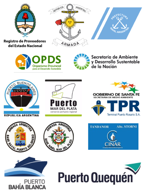 - Prefectura Naval Argentina, con múltiples habilitaciones para todas las tareas que desempeña. Reparaciones Generales ( Calderería - Arenado y Pintado - Tuberías - Aislaciones Térmicas) - Limpieza de Tanques - Trasvase de combustible - Desgasificación de Buques - Tratamiento de Efluentes.